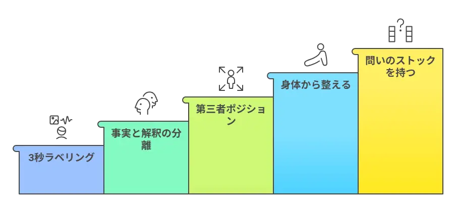 「今、自分は解釈を膨らませているな」と気づけるだけで、脳の前頭前野が働き始めます。